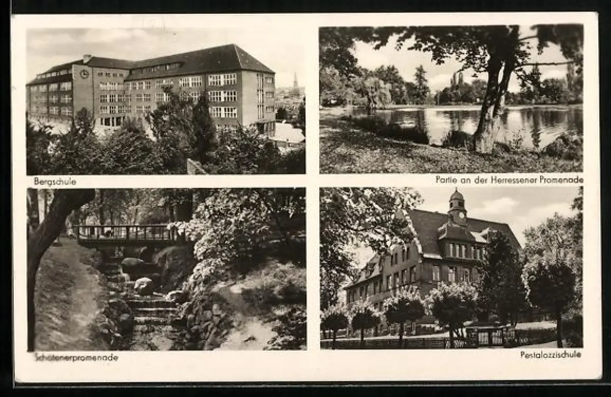 AK Apolda, Bergschule, Pestalozzischule, Herressener Promenade