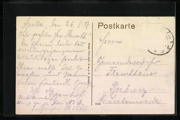 alte Ansichtskarte, gelaufen 1917, Briefmarke entfernt, rückseitig Oberflächenschaden, guter Zustand