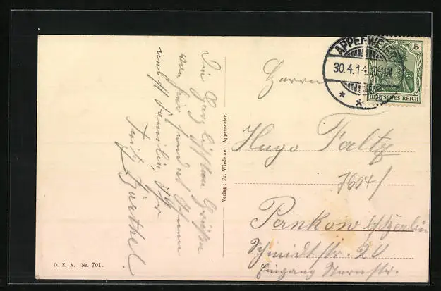 alte Ansichtskarte, gelaufen 1914, guter Zustand
