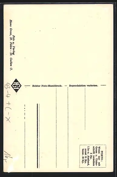 alte Ansichtskarte, ungelaufen, rückseitig Klebe- und Papierreste, guter Zustand