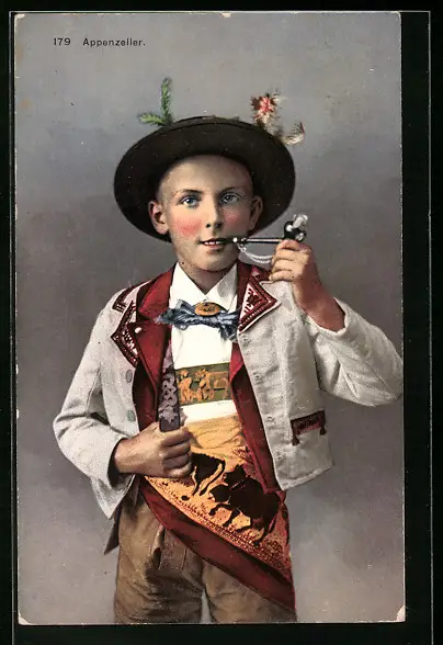 AK Appenzeller Junge in Tracht mit Tabakspfeife