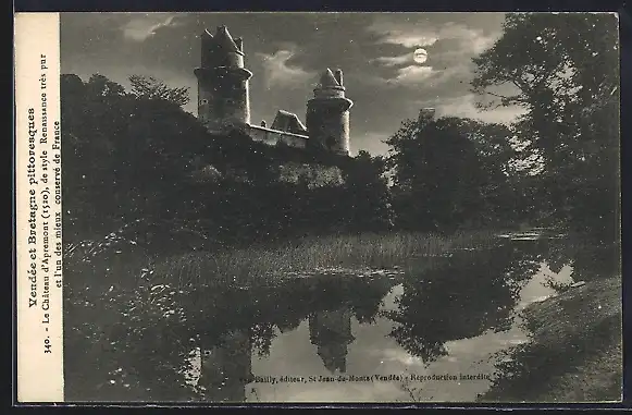 AK Apremont, Le Château de Talmont sous la lune reflétée dans l`eau