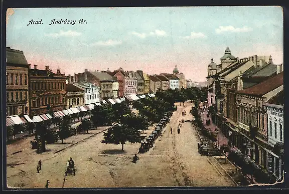 AK Arad, Andràssy-tèr., Strassenpartie aus der Vogelschau