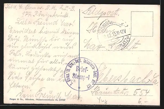 alte Ansichtskarte, gelaufen 1915, Abriebspur re. unten, guter Zustand