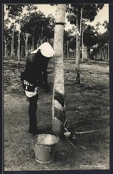 AK Arbeiter bei der Gummigewinnung auf einer Plantage