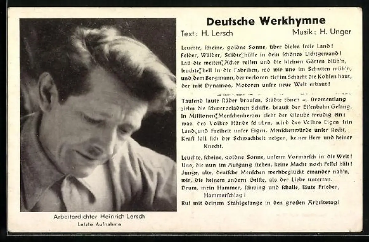 AK Arbeiterdichter Heirich Lersch, Deutsche Werkhymne