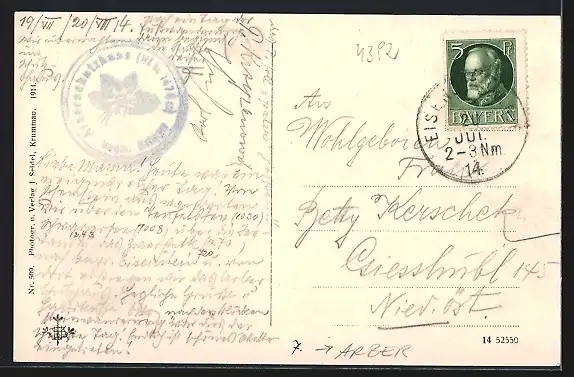 alte Ansichtskarte, gelaufen 1914, guter Zustand