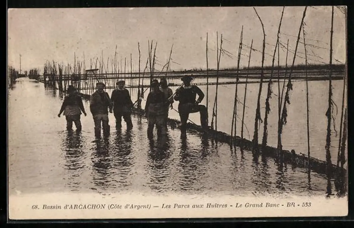 AK Arcachon /Côte d`Argent, Les Parcs aux Huîtres, Le Grand Banc, Muschelfischer