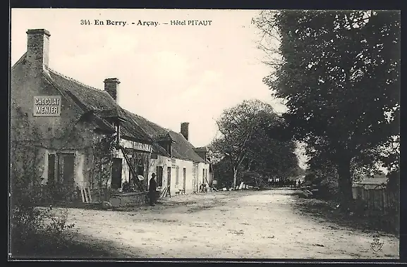 AK Arcay, Hôtel Pitaut et rue bordée d`arbres en Berry