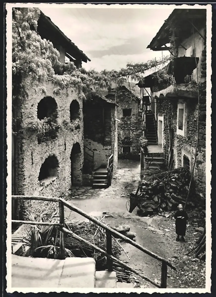 AK Arcegno, Strasse mit alten Häusern, Blondes Mädchen