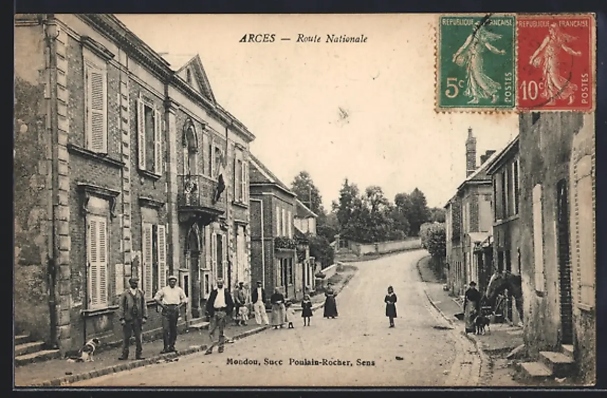 AK Arces, Route Nationale avec habitants devant les bâtiments