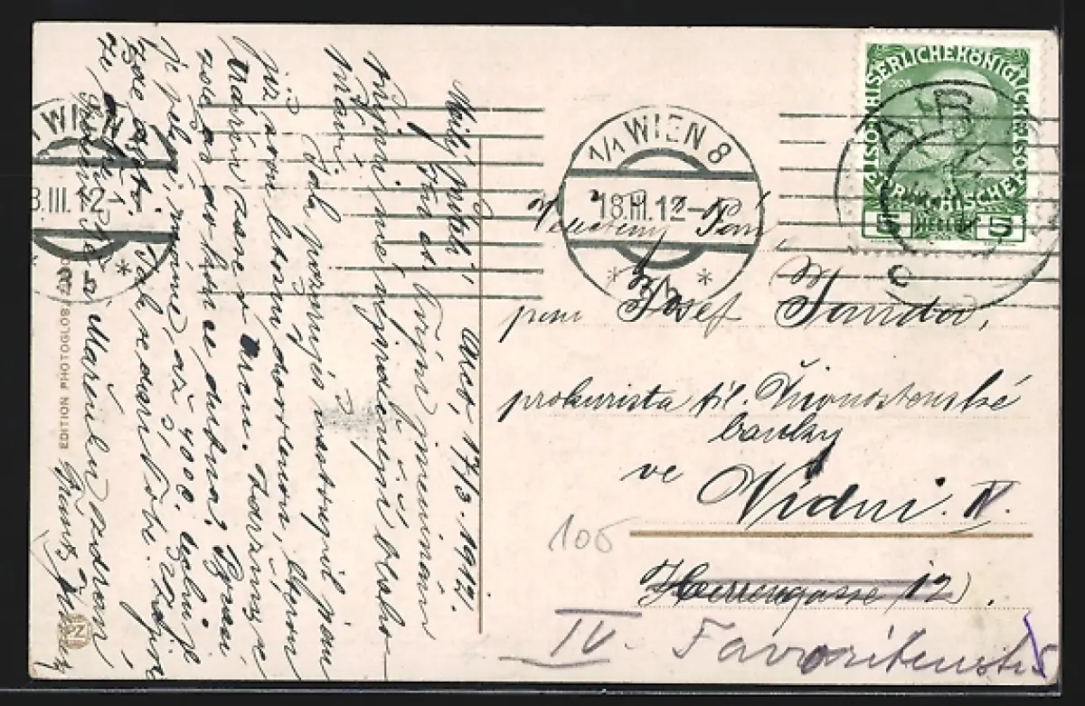alte Ansichtskarte, gelaufen 1912, Stempelspur, guter Zustand