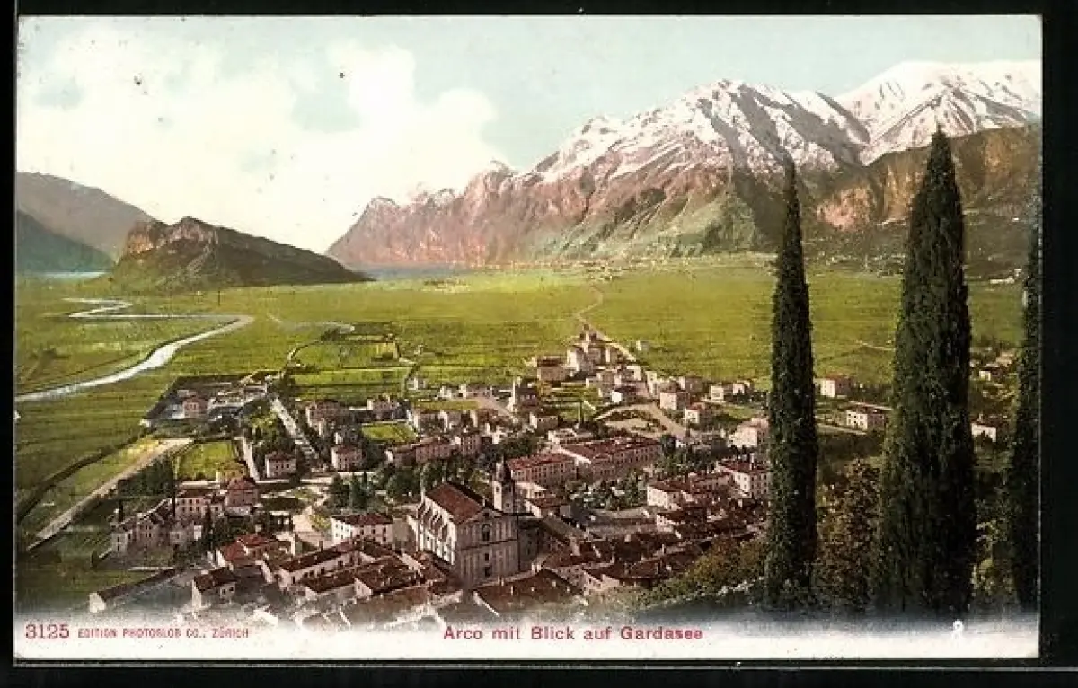 AK Arco, Totalansicht mit Blick auf den Gardasee