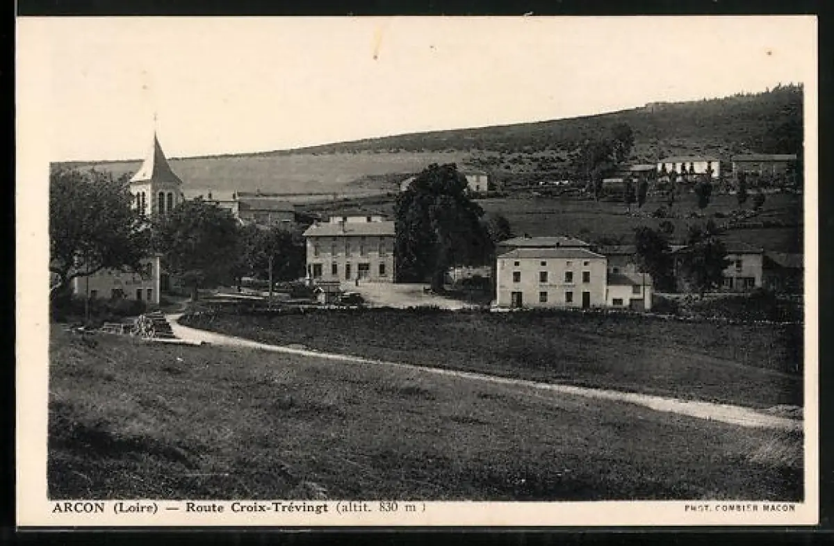 AK Arcon /Loire, Route Croix-Trévingt avec vue sur le village et les collines environnantes