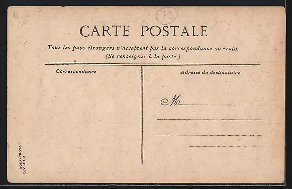 Personenbezogene Daten auf der Rückseite der Karte wurden durch blauen Textmarker unkenntlich gemacht. Die blauen Stellen sind auf die Vorderseite durchgeweicht und wirken sich negativ auf das Postkartenfoto aus
