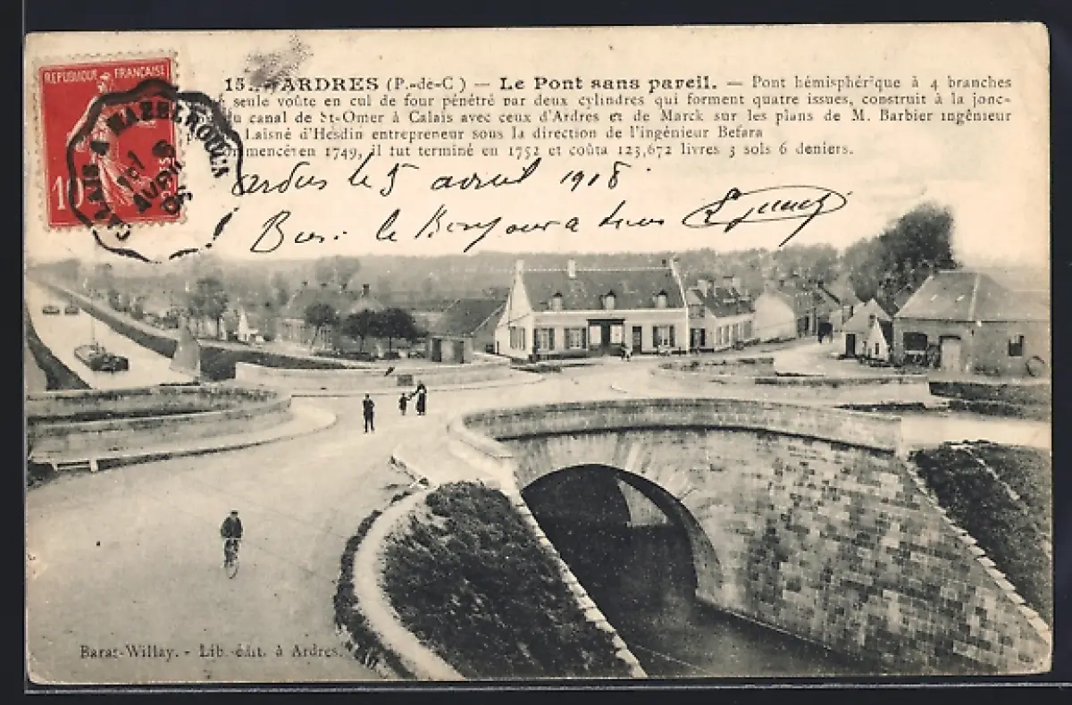 AK Ardres /P.-de-C., Le Pont sans pareil et vue du village avec ponts et routes environnantes
