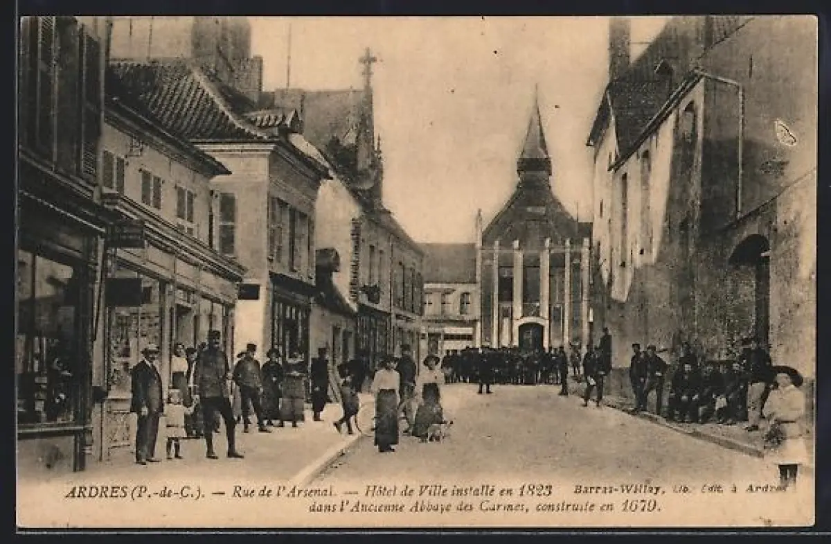 AK Ardres /P.-de-G., Rue de l`Arsenal, Hôtel de Ville installé en 1923, ancienne Abbaye des Carmes