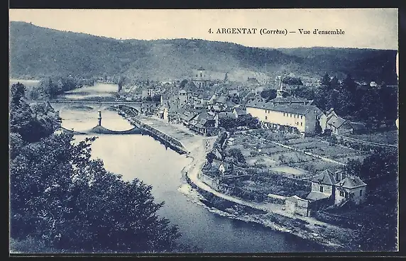 AK Argentat, Vue d`ensemble du village et de la rivière