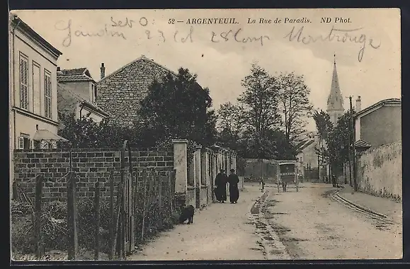 AK Argenteuil, La Rue de Paradis avec passants et calèche