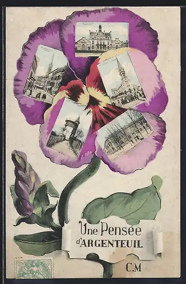 AK Argenteuil, Une Pensée d`Argenteuil avec vues de lieux emblématiques