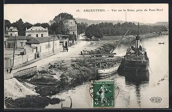 AK Argenteuil, Vue sur la Seine prise du Pont-Neuf avec bateaux amarrés