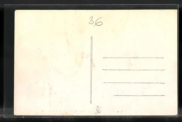 Personenbezogene Daten auf der Rückseite der Karte wurden durch blauen Textmarker unkenntlich gemacht. Die blauen Stellen sind auf die Vorderseite durchgeweicht und wirken sich negativ auf das Postkartenfoto aus
