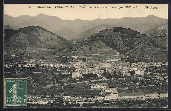 AK Arles-sur-Tech, Panorama et vue sur le Canigou (2785 m)