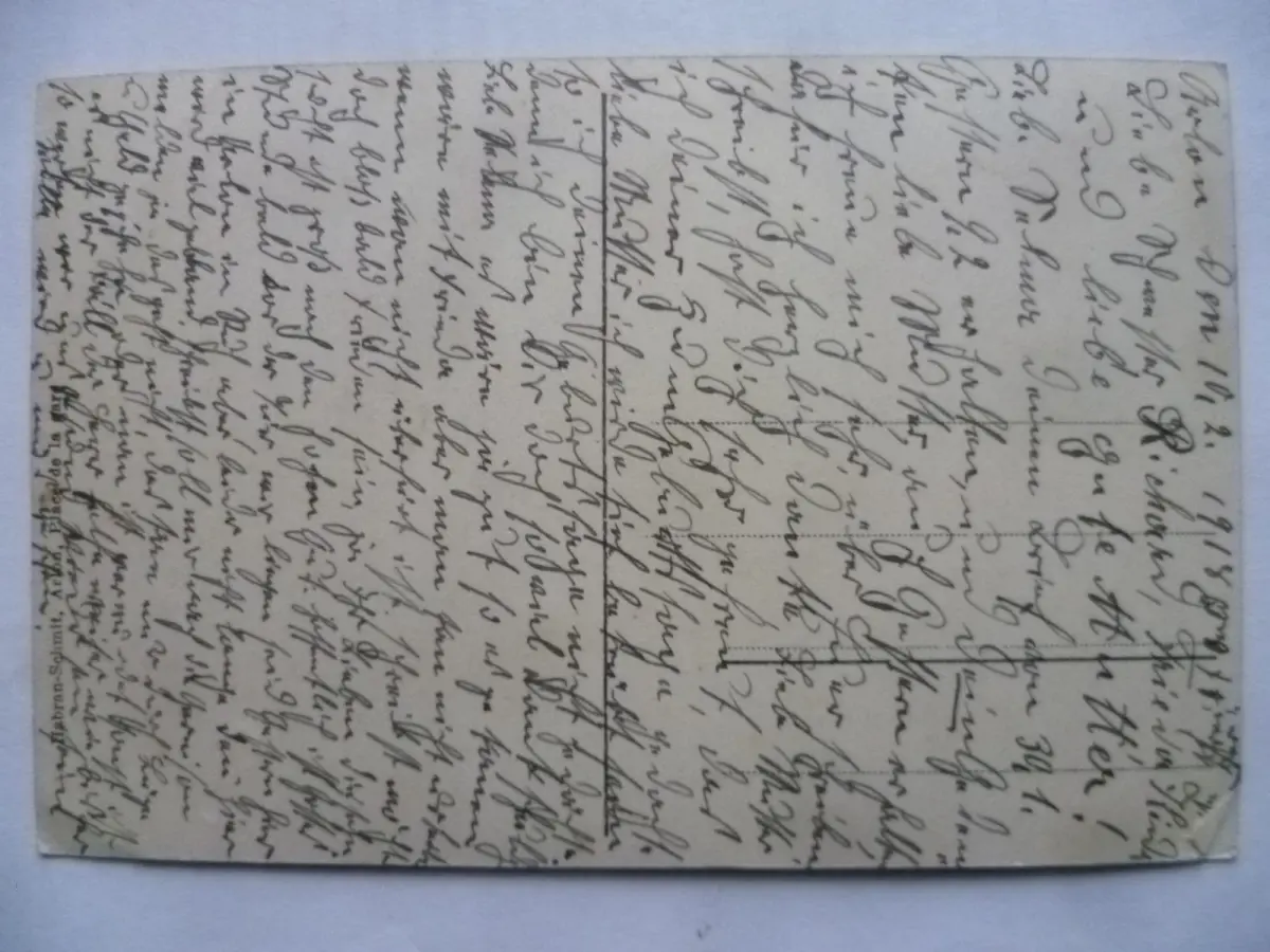 Geschrieben 1918, nicht gelaufen.  Einige Stellen mit oberflächlichem Milbenfraß.