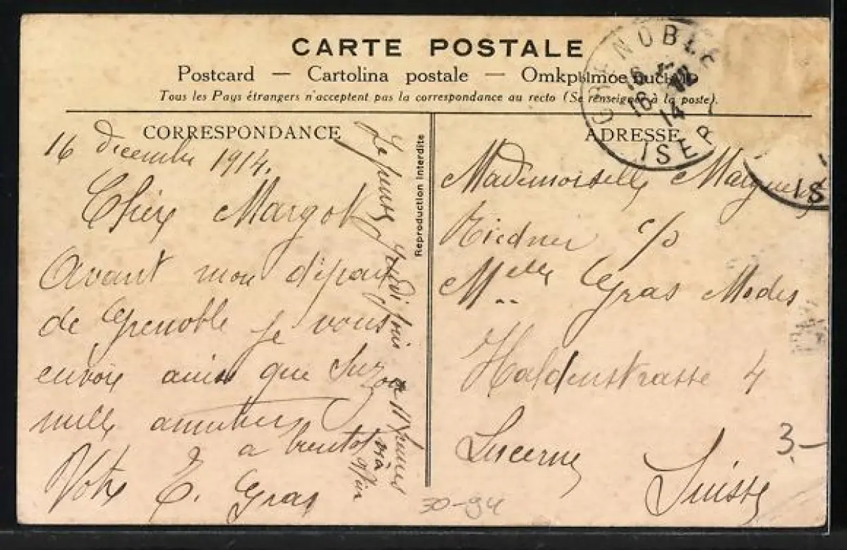 gelaufen 1914, Briefmarke entfernt, Eckknick unten rechts, guter Zustand