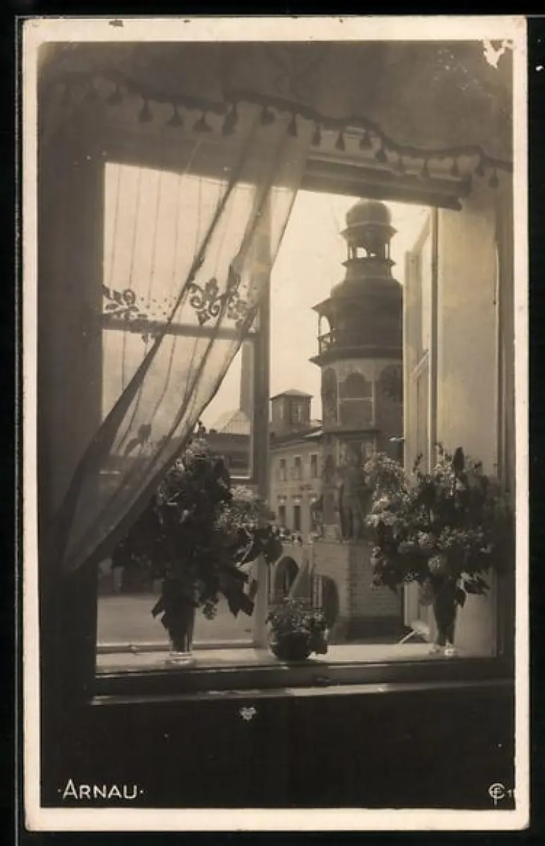 AK Arnau, Strassenpartie durch Fenster gesehen