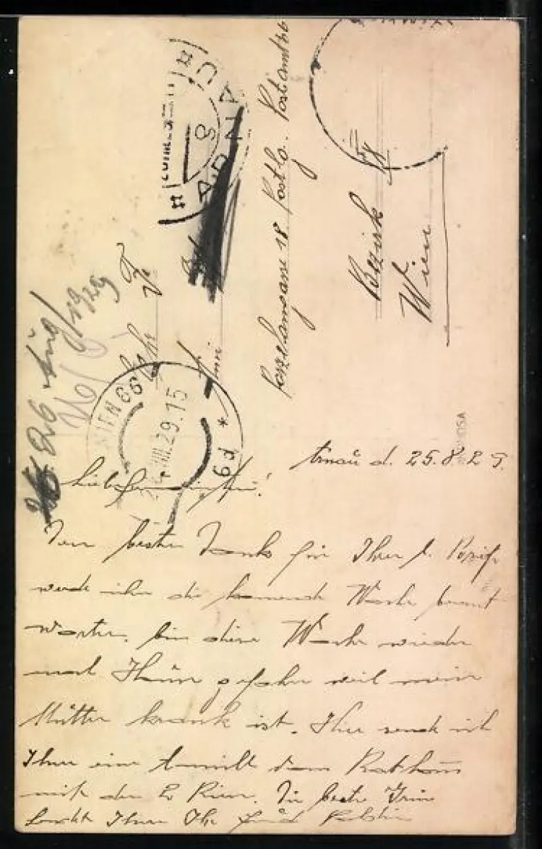 gelaufen 1929, Briefmarke entfernt, rückseitig Oberflächenschaden, Abriebspur re. oben, guter Zustand