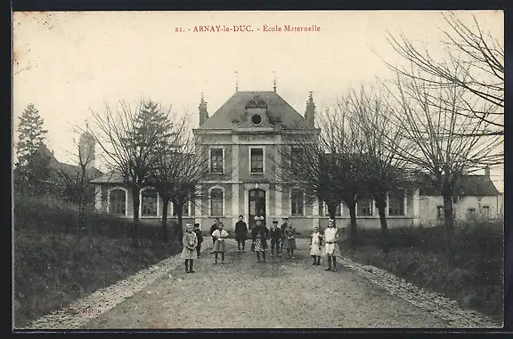 AK Arnay-le-Duc, École Maternelle avec des enfants devant l`école