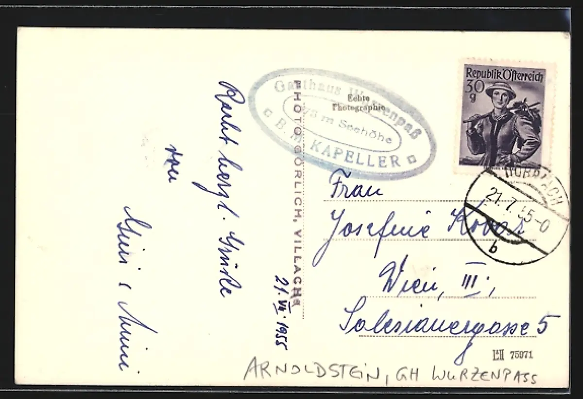 AK Arnoldstein, Gasthof Wurzenpass von B. M. Kapeller