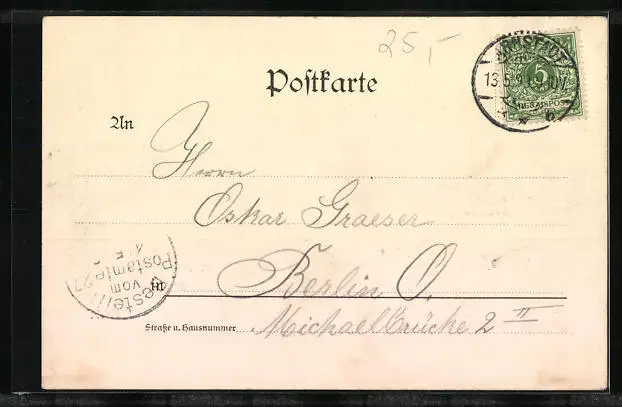 alte Ansichtskarte, gelaufen 1899, guter Zustand