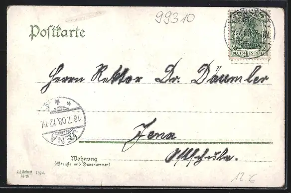 alte Ansichtskarte, gelaufen 1908, guter Zustand