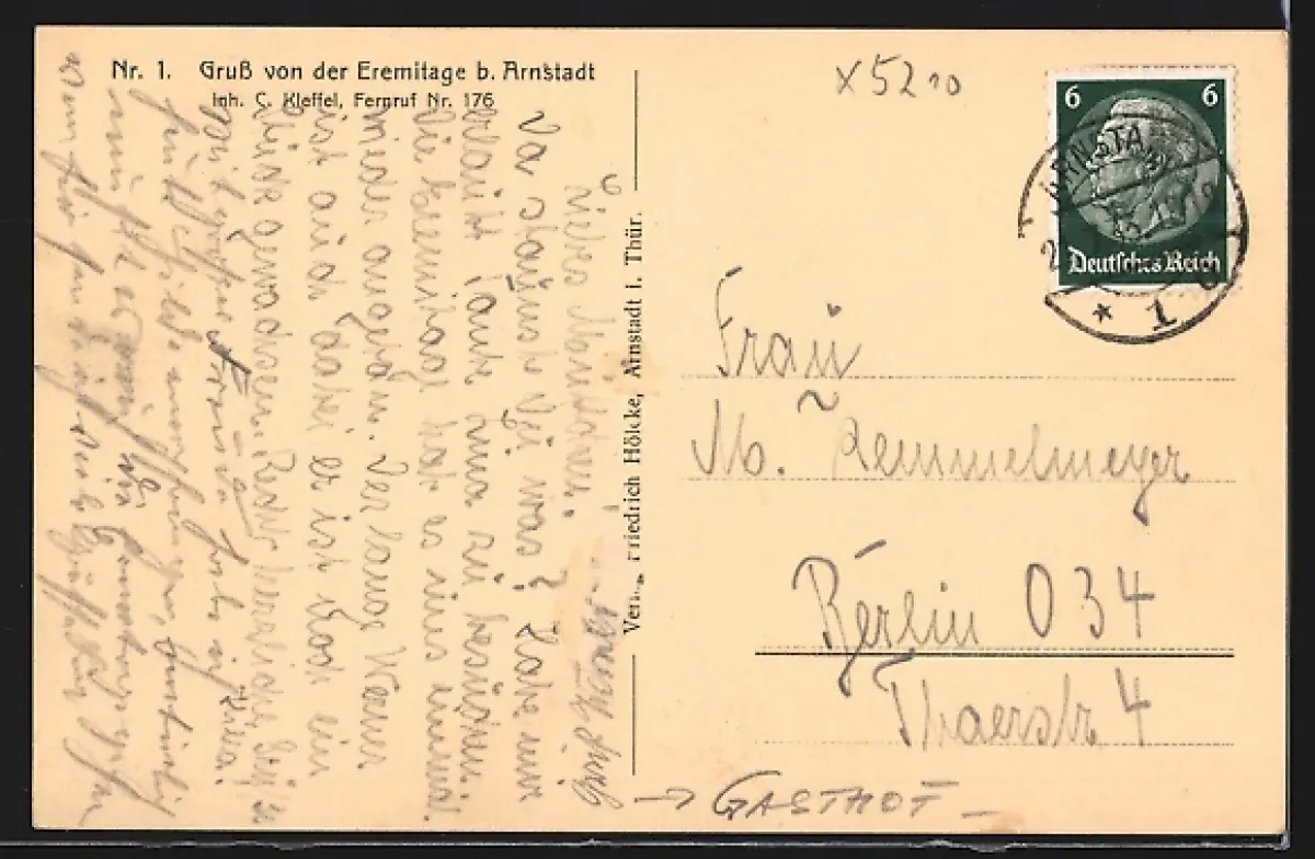 AK Arnstadt i. Thür., Gasthof Eremitage