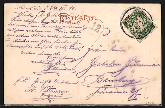 alte Ansichtskarte, gelaufen 1910, guter Zustand