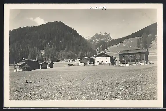 AK Arosa, Amselfluh /Landwassertal, Ortsansicht mit Bergspitze im Hintergrund