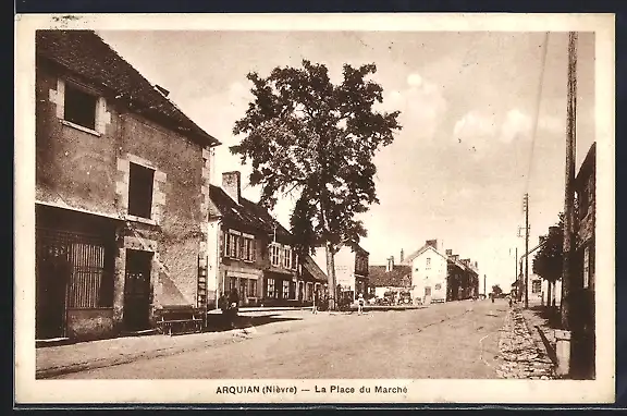 AK Arquian, La Place du Marché avec vue sur la rue principale et maisons anciennes