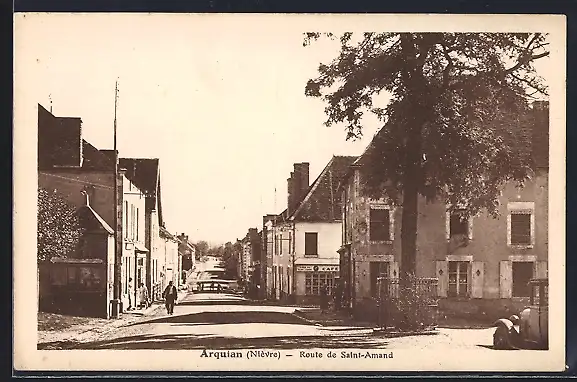 AK Arquian, Route de Saint-Amand avec bâtiments et arbres