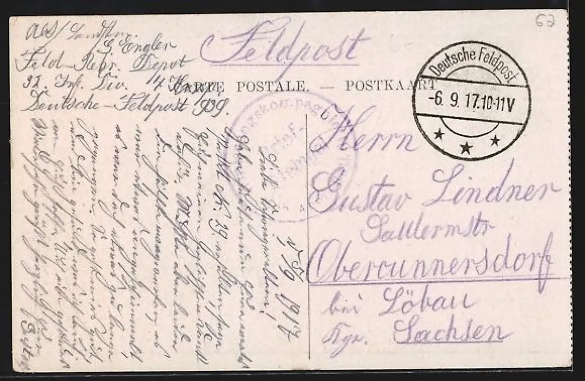 gelaufen 1917, Eckknicke re. oben und unten, guter Zustand