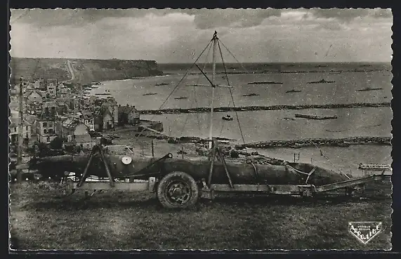 AK Arromanches-les-Bains, La Port de la Libération 1944, Vue générale prise de la falaise Est