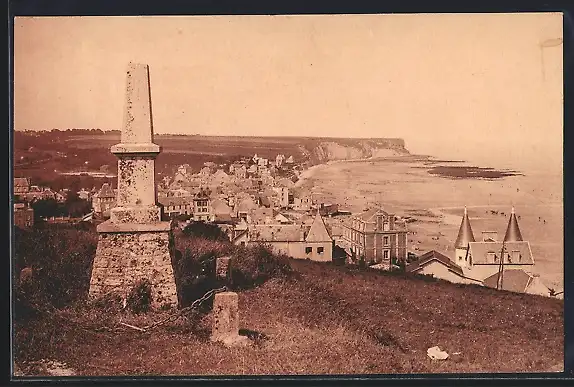 AK Arromanches-les-Bains, Monument commémoratif et vue de la plage