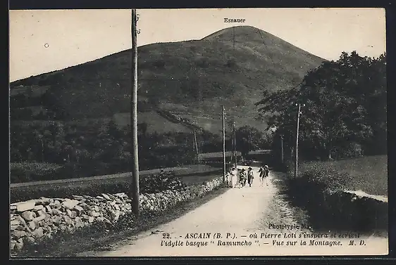 AK Ascain /Basses-Pyrénées, L`idylle basque Ramuncho, Vue sur la Montagne