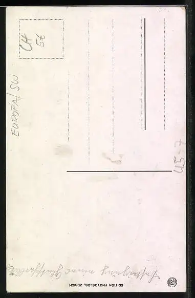 Personenbezogene Daten auf der Rückseite der Karte wurden durch blauen Textmarker unkenntlich gemacht. Die blauen Stellen sind auf die Vorderseite durchgeweicht und wirken sich negativ auf das Postkartenfoto aus
