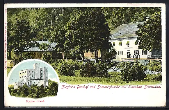 AK Aschach a. D., Gasthof Steinwand L. Ziegler, Ruine Stauf