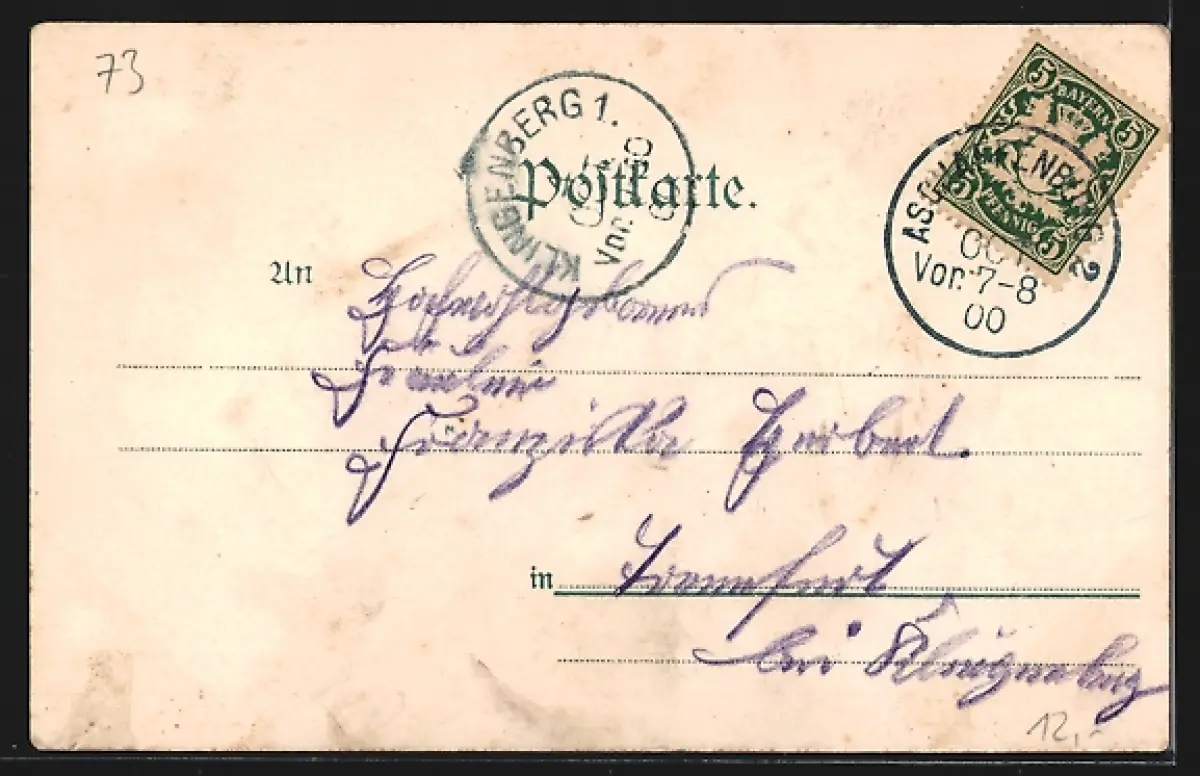 alte Ansichtskarte, gelaufen 1900, guter Zustand