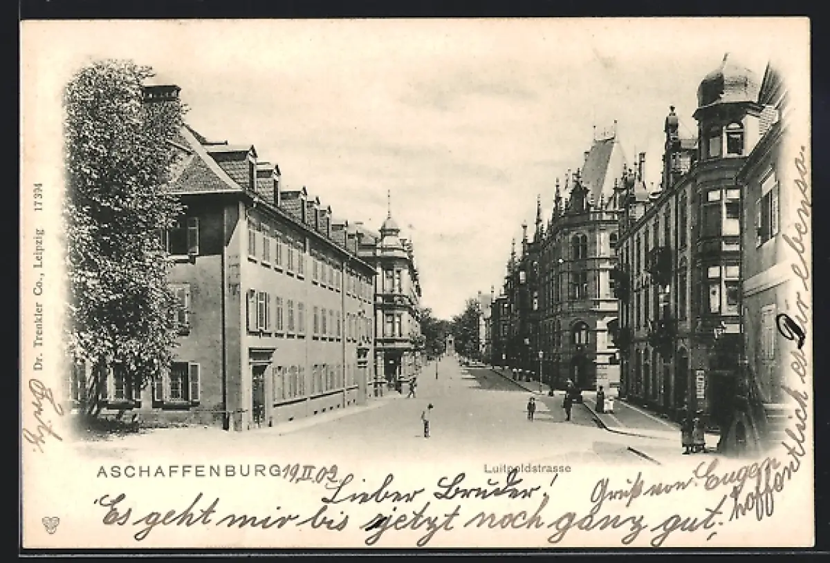 AK Aschaffenburg, Partie aus der Luitpoldstrasse