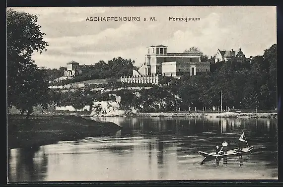 AK Aschaffenburg a. M., Flusspartie mit Pompejanum