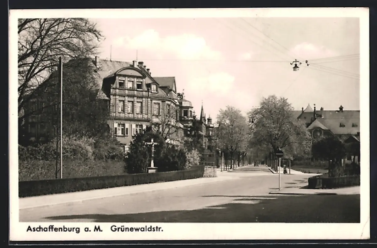 AK Aschaffenburg a. M., Partie in der Grünewaldstrasse
